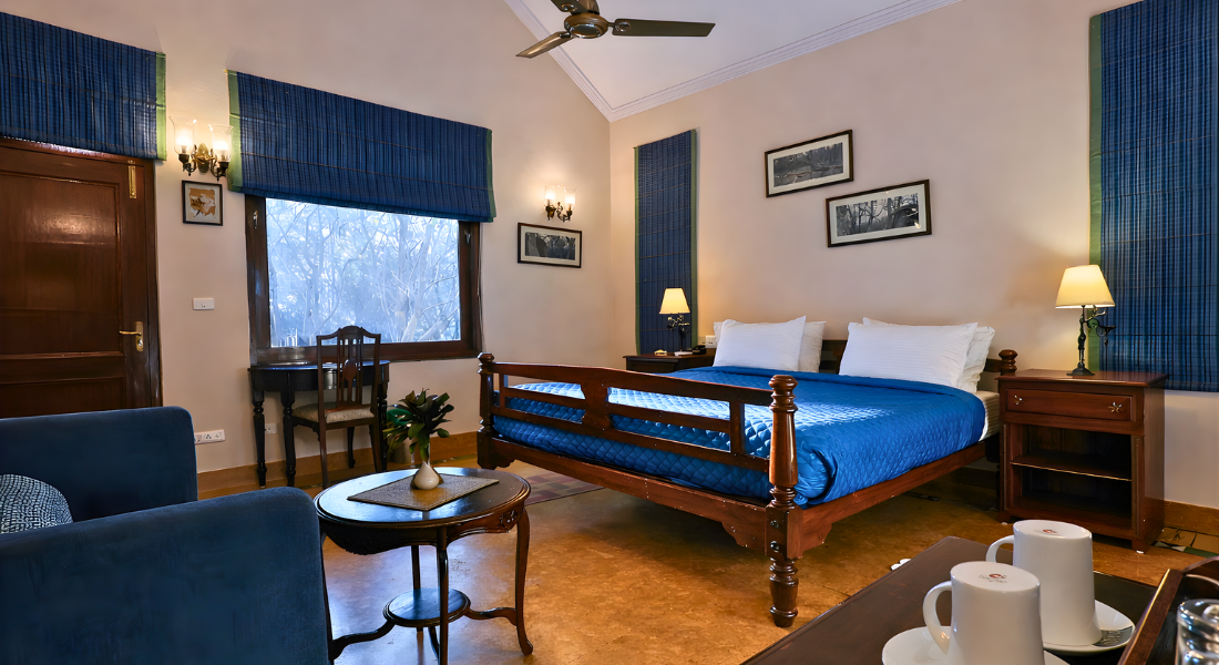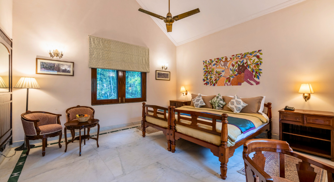 Kanha reveals itself gently. Vast sal forests stretch as far as the eye can see, meadows open quietly between the trees, and the air carries a stillness that feels deeply grounding. This is a land shaped by the rhythm of wildlife, seasons, and stories that have unfolded over centuries. In the early hours, mist lingers low over the grasslands. By afternoon, sunlight filters softly through towering trees. Evenings arrive with a hush, broken only by distant calls from the forest.
