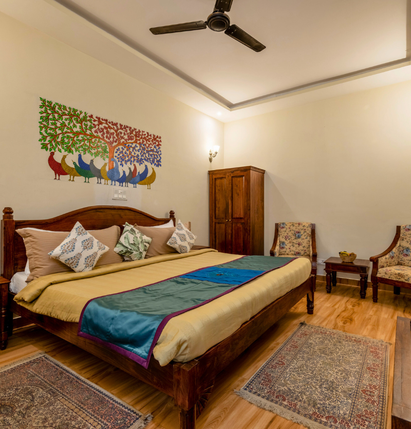 The resort is located around 15 minutes from Mukki Gate, the prime entry point of Kanha National Park.