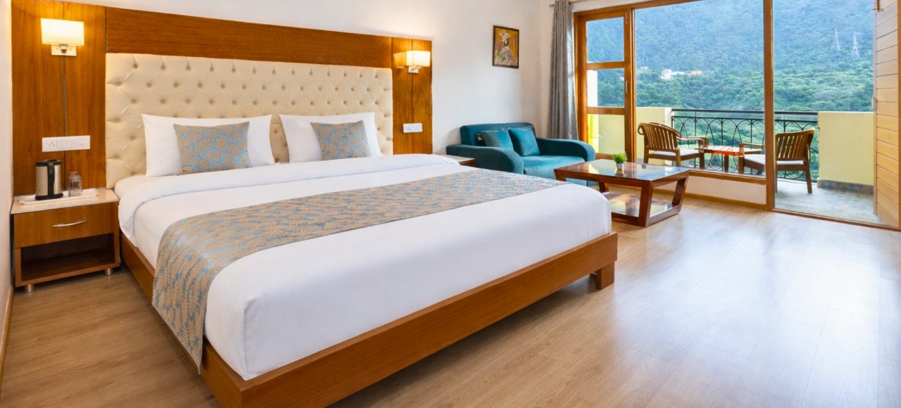 Whether you’re pausing on a spiritual journey or unwinding amidst nature, the Deluxe Room offers a refined balance of comfort, space, and scenic serenity.